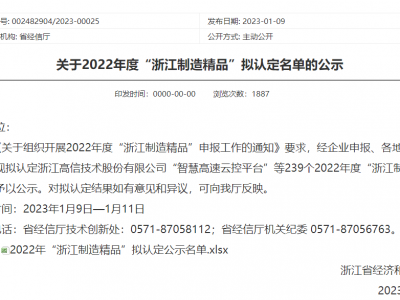 浙江省经济和信息化厅于2023年1月9日公示了2022年度“浙江制造精品”拟认定名单,乐鱼电竞股份有限公司“第五代移动警务终端P99